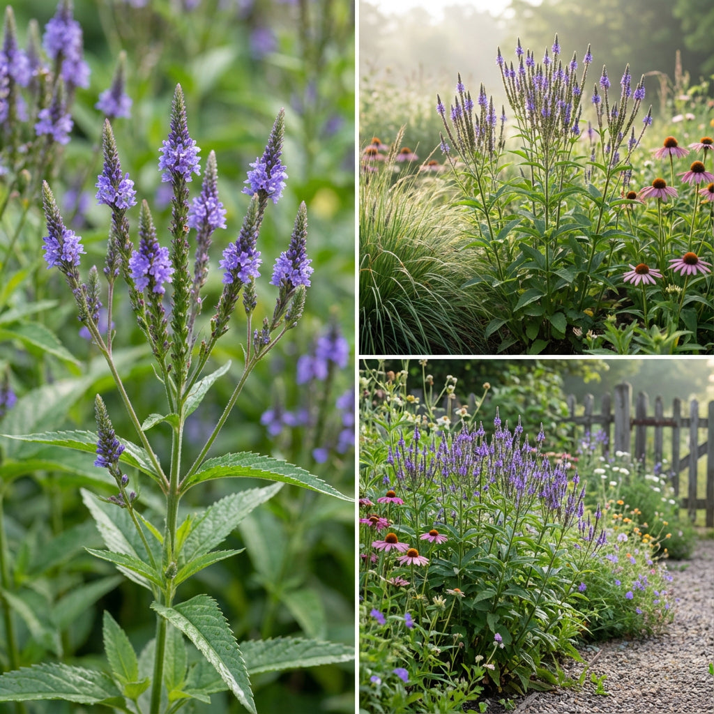 Blue Vervain (Verbena hastata) is a graceful, tall perennial with clusters of tiny blue-purple flowers that bloom in summer. Known for its natural beauty and pollinator-friendly appeal, this plant adds vertical interest to gardens and meadows. Its a hardy, low-maintenance choice for gardeners who love native flowering plants.